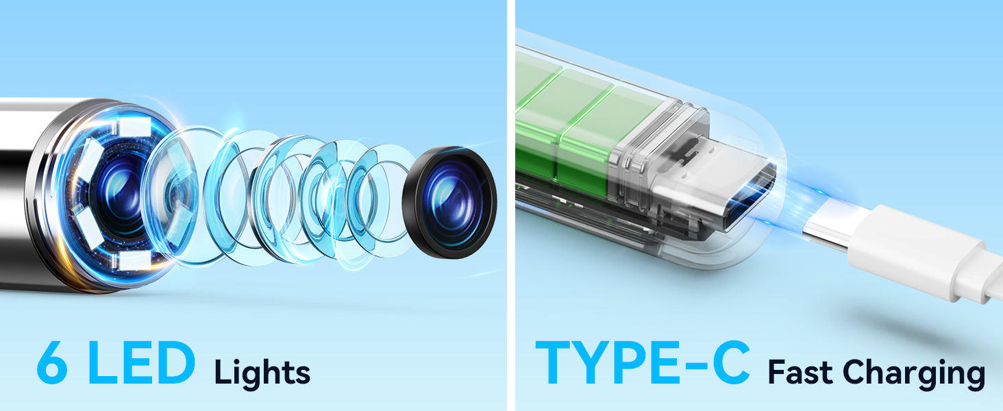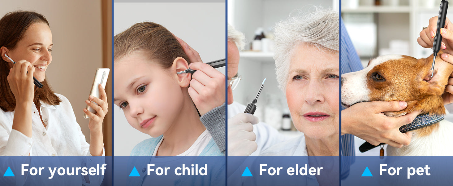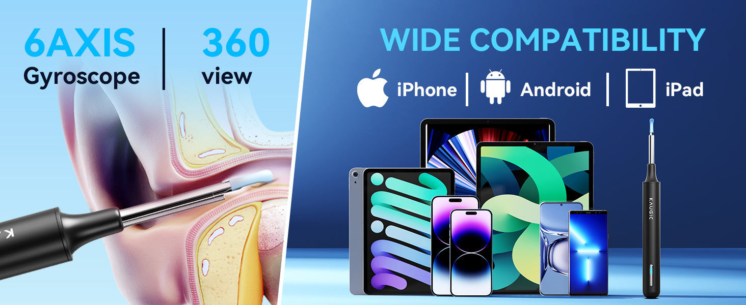 - 1080P HD Wide Angle Ear Wax Removal: Earwax removal kit is equipped with 1080P HD camera, 360°wide angle lens and 6 LED lights, you can clearly see the details of ear canal.When use ear cleaners,ear wax removal tool camera's temperature is close to human temperature. Suitable for adults, children, dog, cat, pet, check teeth, nose, throat, and other body parts