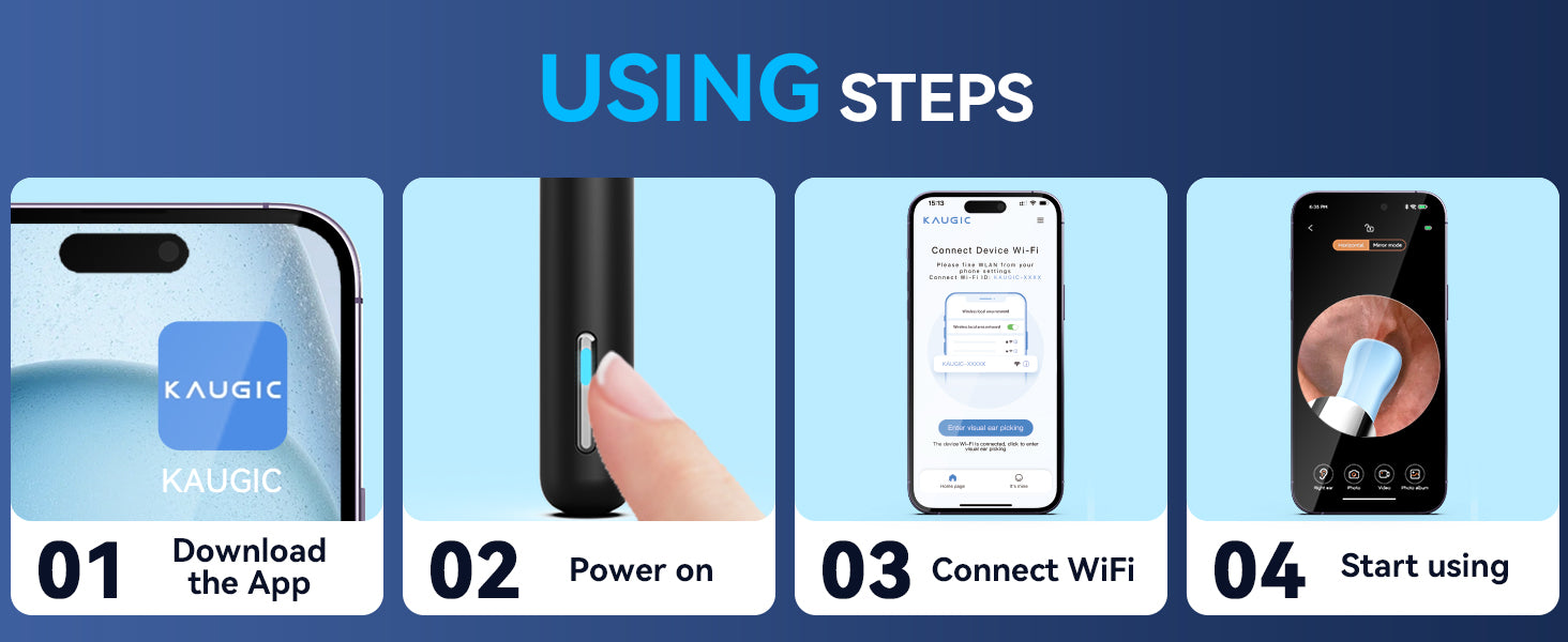 - Wide Compatibility Ear Wax Removal Camera: Ear cleaning tool with camera is compatible with Android and IOS systems, you can download the APP in APP store or scan QR code, long press to turn on ear camera, connect device's WIFI. Ear camera wax removal quickly transmits video data to your cell phone via its WIFI signal, giving you a smooth viewing experience and helping you remove earwax safely and efficiently. if you want to save videos and photos you took to your phone's gallery, please give the APP permission to access your phone gallery