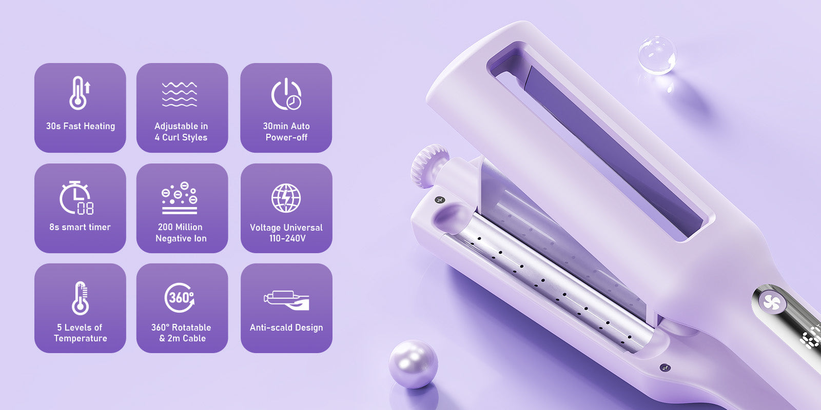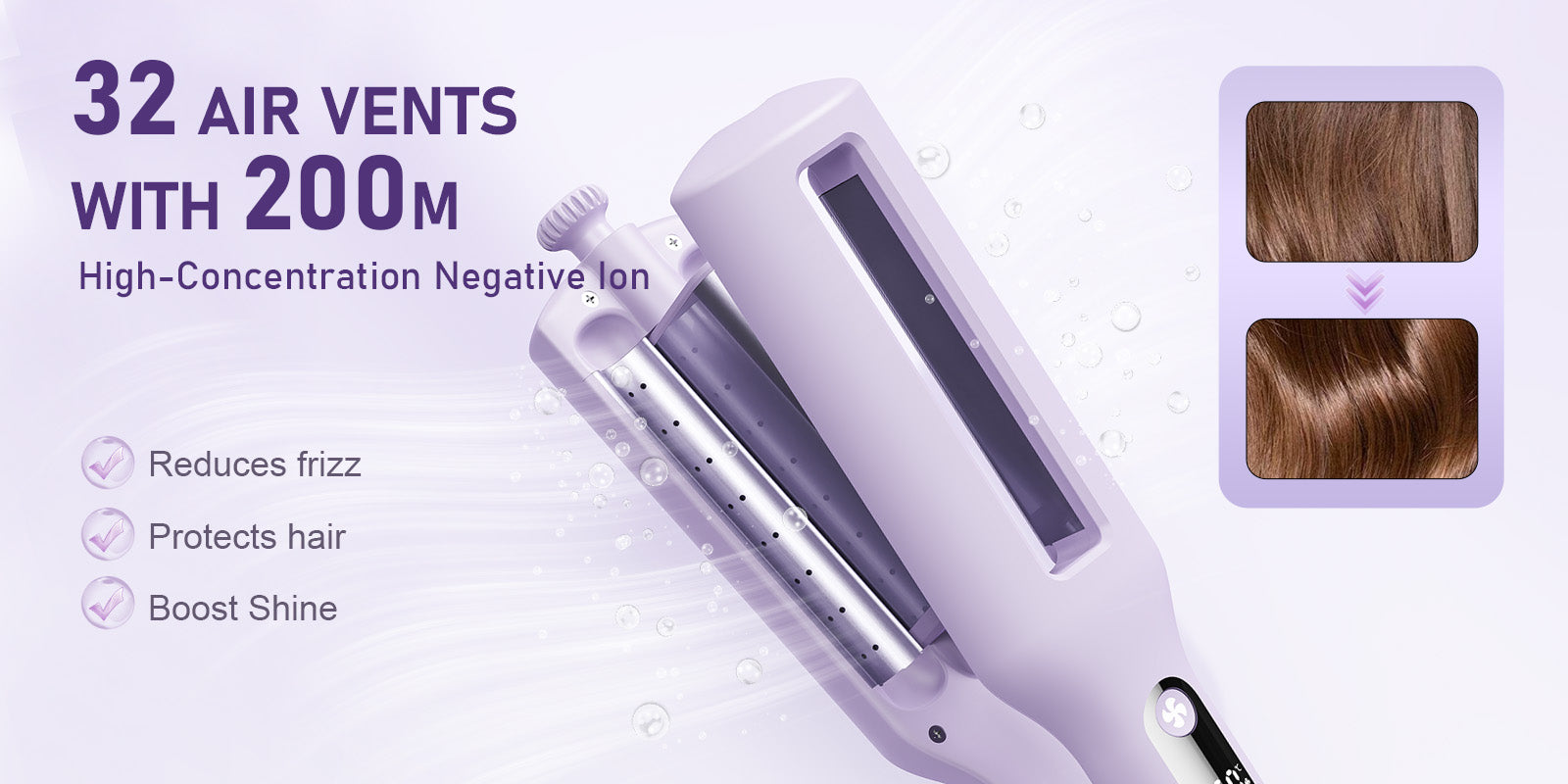 【HAIR DAMAGE WORRY-FREE】KUGIC professional curling iron is used Cold Air and 200million negative ions to minimize your hair damage problems. The curling iron Smooths away frizz and adds smoothness and leaving waves silky and free from flyaways.