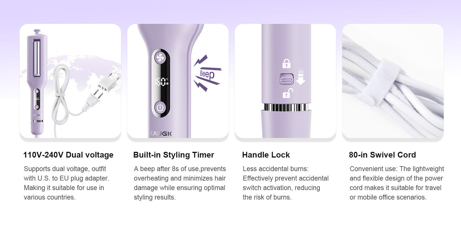 【SAFETY & ANTI-BURN DESIGN】If you forget to turn off this high temperature curling tool after using it, the KAUGIC curling iron will automatically turn off after 30 minutes to prevent fire. The curling iron is fully wrapped and insulated and equipped with anti-scalding gloves to effectively protect your fingers from getting burned while creating stunning mermaid waves with ease.