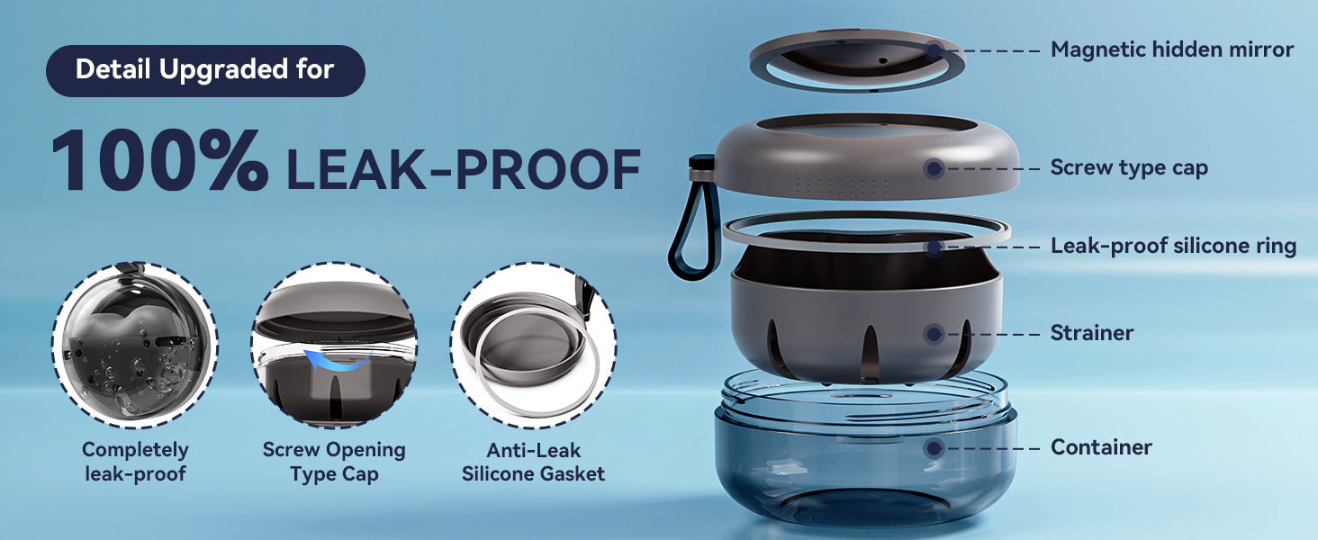 - Leak-Proof Design: The denture bath case ensures secure storage after the thorough cleaning action of the ultrasonic machine. Say goodbye to worries about leaks or spills.