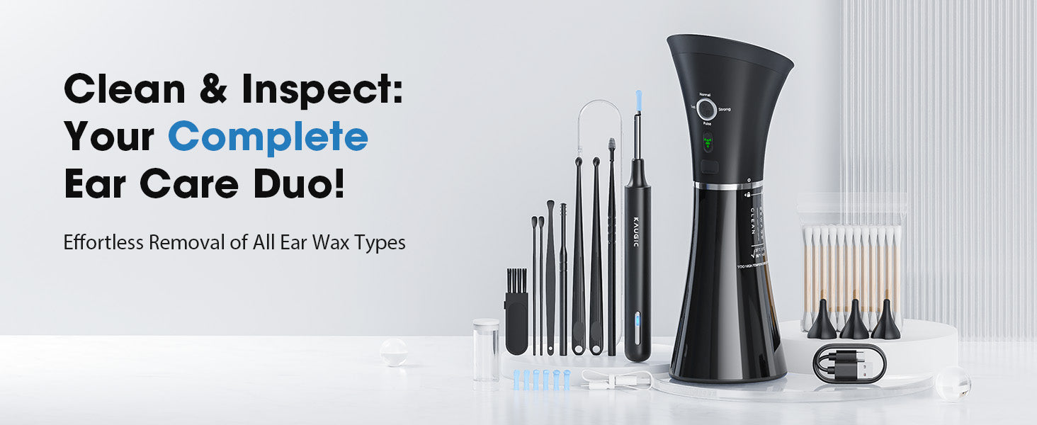 Upgrade your ear hygiene with the KAUGIC DualTech Ear Cleaning Kit, a professional-grade combo that combines advanced visual inspection with powerful water-powered cleaning. This 2-in-1 bundle includes: