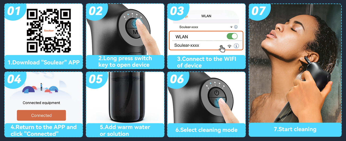 - 2 Cleaning Modes: Our ear cleaning kit comes with camera, when you want to observe the cleaning effect or check the condition of ear canal, you can open the Soulear APP to connect to product WIFI to get video images. When you are short of time, you can directly turn on the device to clean the ear without opening the APP, cleaning will be easier