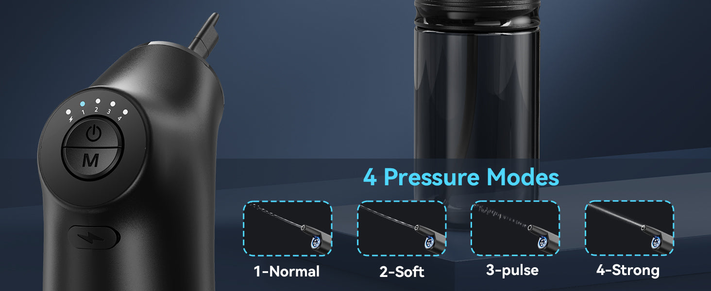 - 4 Pressure Modes: Ear cleaner has 4 water pressure modes (1-soft, 2-normal, 3-pulse, 4-strong), it can provide 7-24.5psi gentle and comfortable water pressure, while cleaning ears quickly, it will not damage your ear canals, 4 kinds pressure settings can meet different needs of your family members, let your family enjoy clear sound