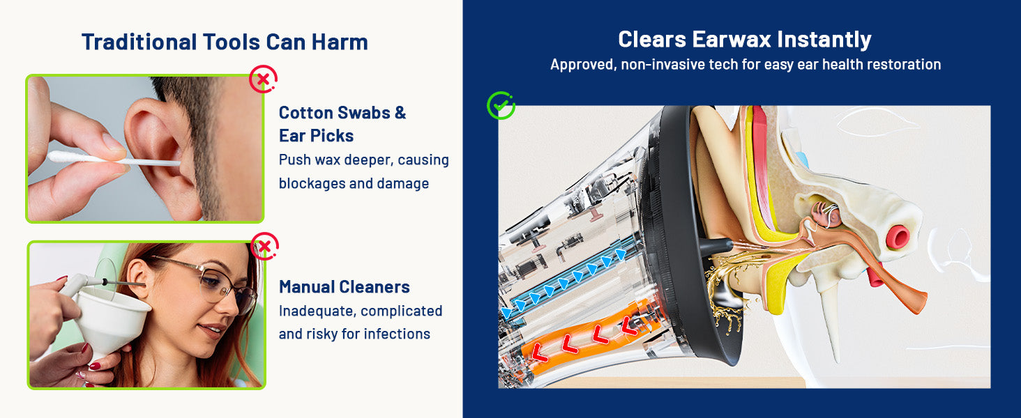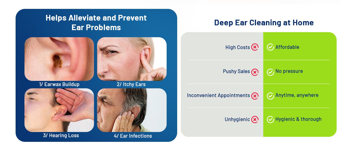 ✅ Completely Eliminates Earwax Blockage, Ear Fullness, Pain, and Odors