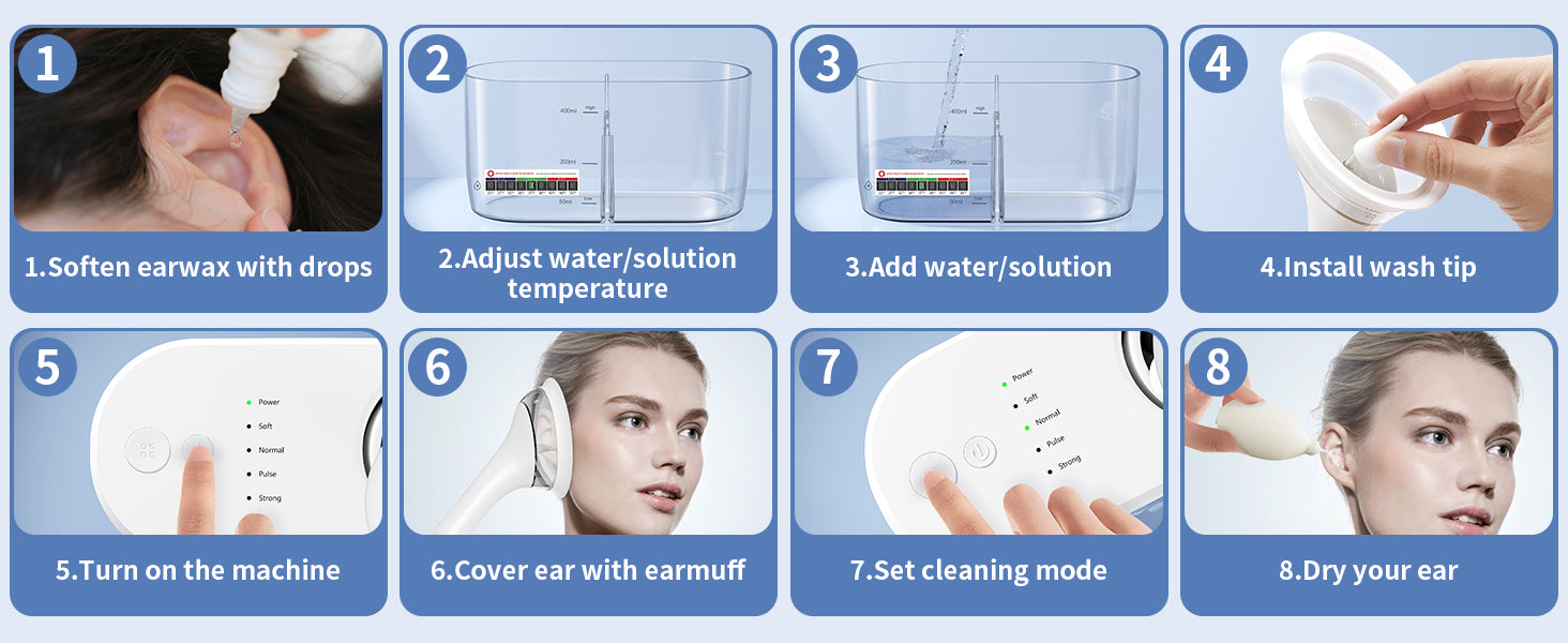 - Leak-proof: The earmuff of ear cleaner have been professionally tested and designed. The shape of earmuff is more suitable for human face, and the edge of earmuffs is made of soft material, which will make earmuffs and face fit more closely. Prevent liquid leakage